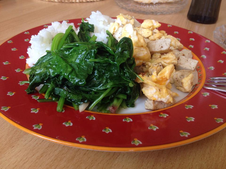 - Reis mit Spinat und Tofu/Ei