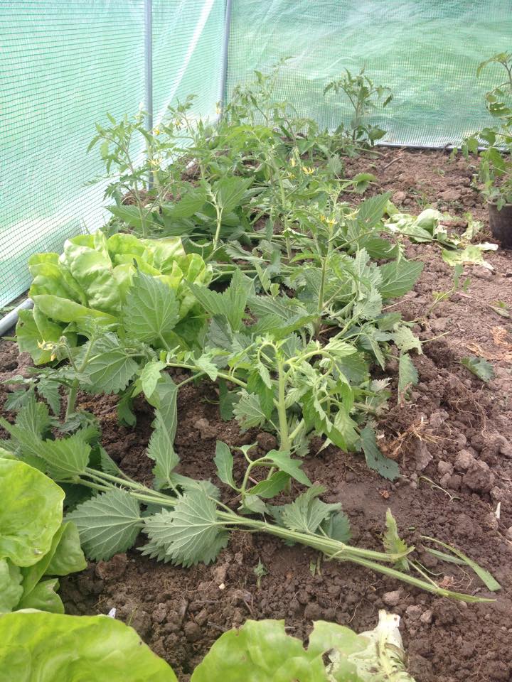 Zwischen den Paradeisern, die meine liebe Freundin für mich gezogen hat, sind Brennessel gelegt. Ihre Wirkstoffe stärken die jungen Pflanzen. Ich werd demnächst auch einen Auszug bzw. eine Jauche herstellen um sie damit schneller versorgen zu können.