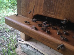 - Die Bienen “sterzeln”, damit ihre Schwestern den Eingang zur neuen Bleibe finden …es gibt auch einige Brüder 😉