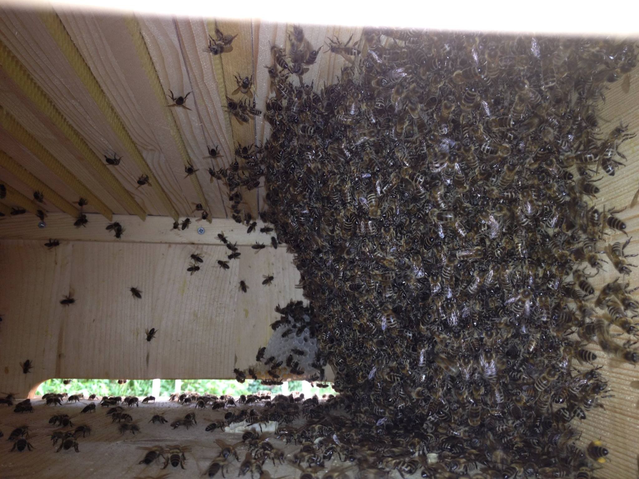 - Nach 4 Tagen erstmals eine Innenansicht – sie beginnen bereits ihr Wabenwerk zu bauen.