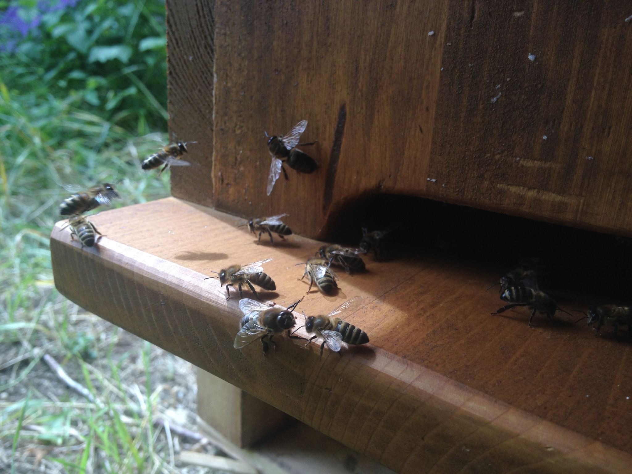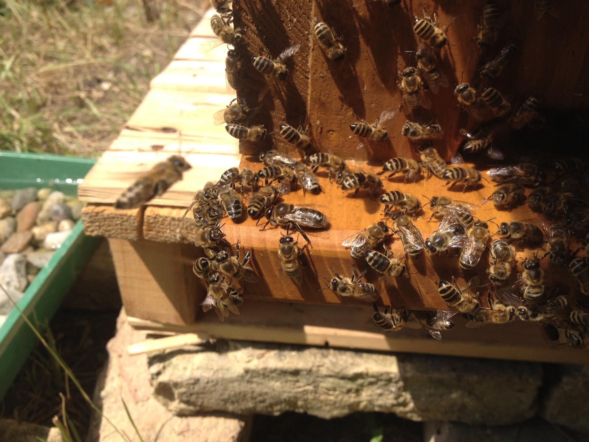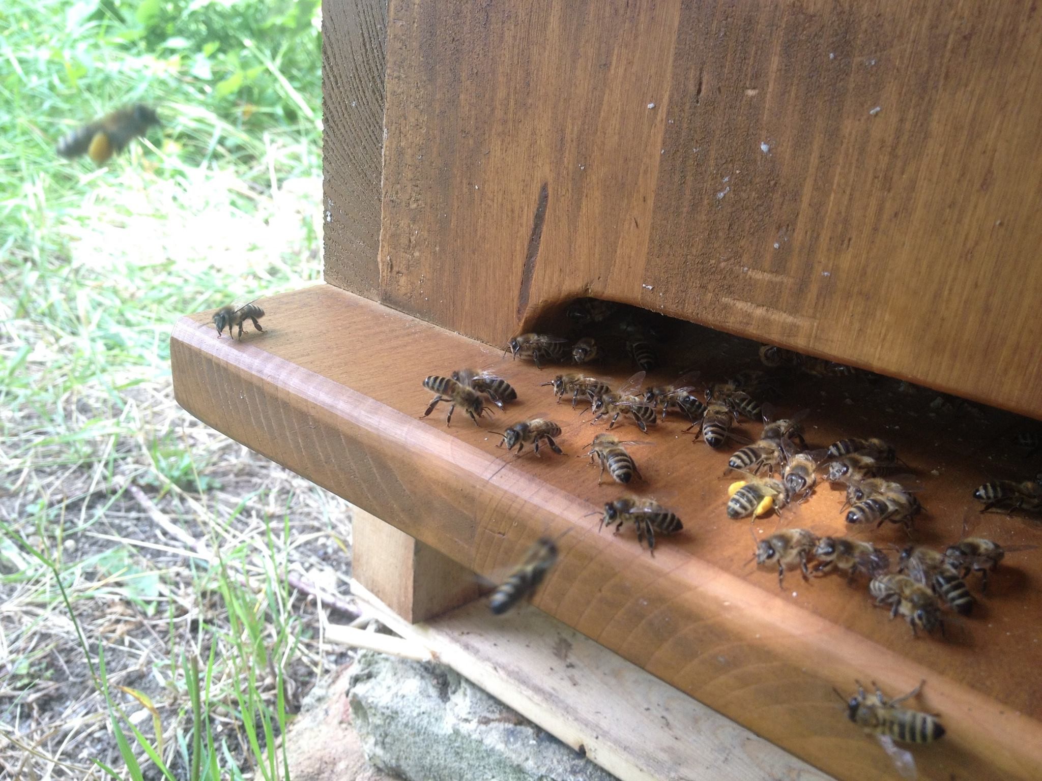 - Die Bienen “sterzeln”, damit ihre Schwestern den Eingang zur neuen Bleibe finden …es gibt auch einige Brüder 😉