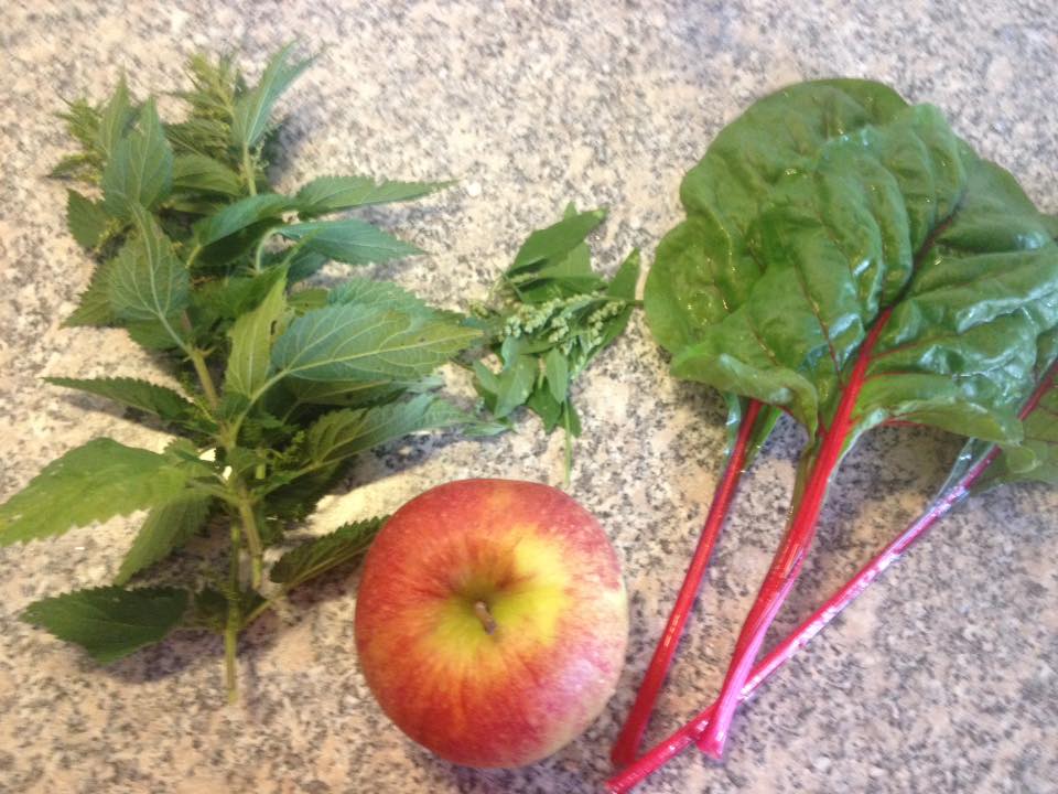 - Brennessel, Gänsefuss, Mangold und ein Apfel