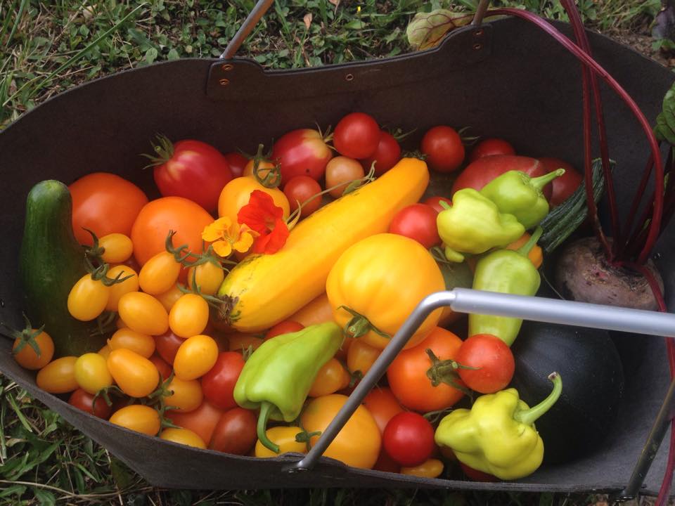 Der Herbst kehrt ein, die Temperaturen sinken nachts bereits auf 8°Celsius … Die Blätter an den Bäumen beginnen sich zu färben und zu fallen. Am Krauti sieht es in gewisser Hinsicht wüst aus. Die roten Rüben und die Erdäpfel warten auf ihre Ernte -bereits ein Monat lang. Tja, heute wirds wieder nix mit denen …aber dafür nehm ich zwei große grüne Zucchini, zwei große und einen kleinen gelben Zucchini und einen Rondini mit. Eine Gurke, ein paar Paprika und Paradeiser …mmmh. Ah, eine rote Rübe hab ich mit genommen -damit mach ich mir heute was leckeres!