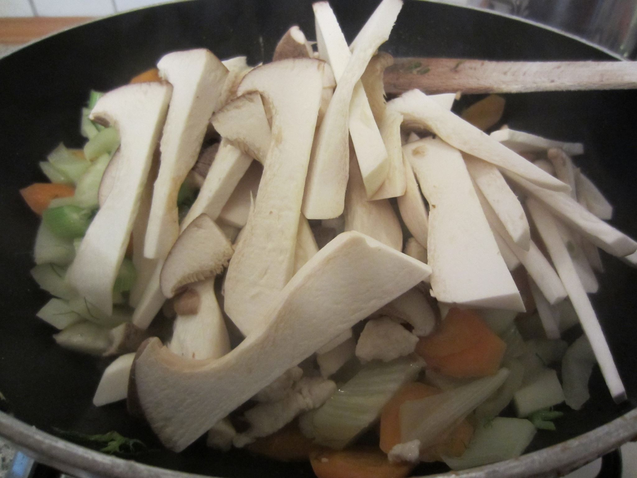 - Zum Schluss die Pilze, die verlieren fast kein Wasser.