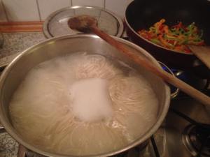 - Nudeln drei bis vier Minuten kochen