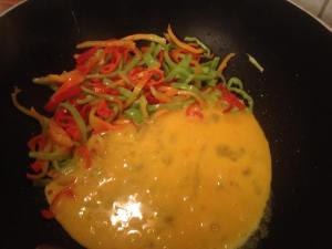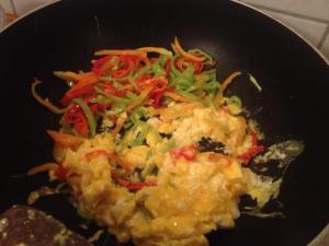 - Paprika zur Seite und Ei braten