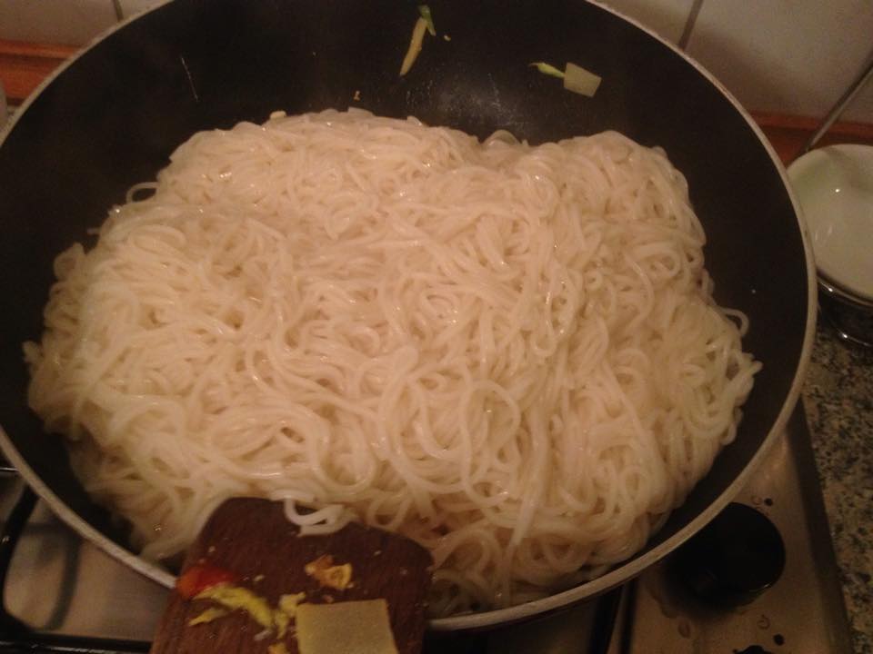 Nudeln abseihen und übers Gemüse geben