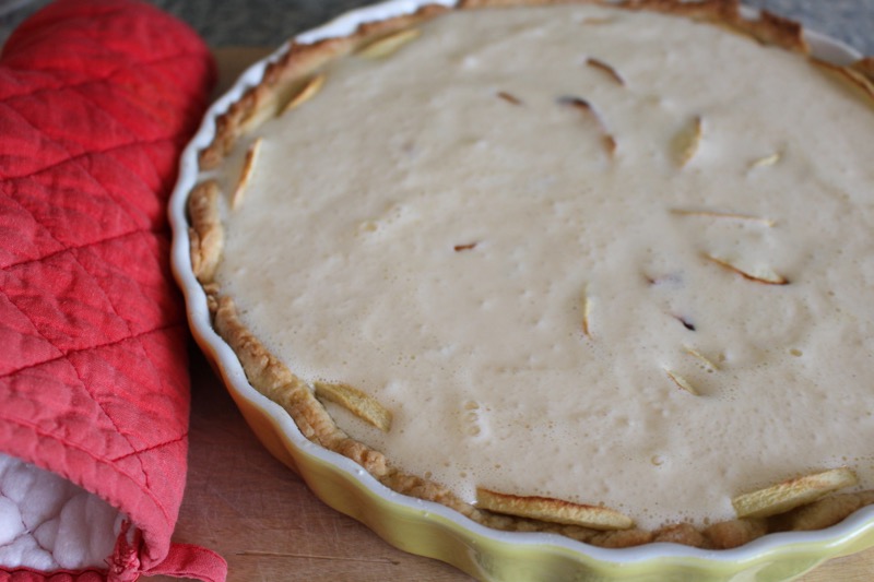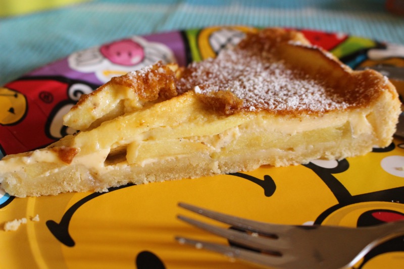 - Schlagobers, 2 Eier, restlichen Zucker und den Vanillezucker mixen und über die Tarte giessen. Noch weitere 15 – 20 Minuten fertig backen. Die Apfeltarte auskühlen lassen und danach leicht mit Staubzucker bestäuben.