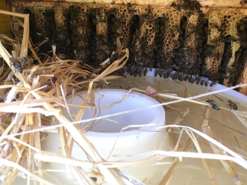 Das Volk in der Einraumbeute hat 15 kg bekommen. Das ging ganz gut, mit der Futtertasche.