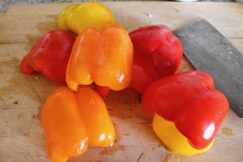 Zutaten: 4 Paprika (keinen grünen wenns geht -der ist bitter), 1 Knoblauchzehe, 1 Jungzwiebel, 1 cm frischen Ingwer.