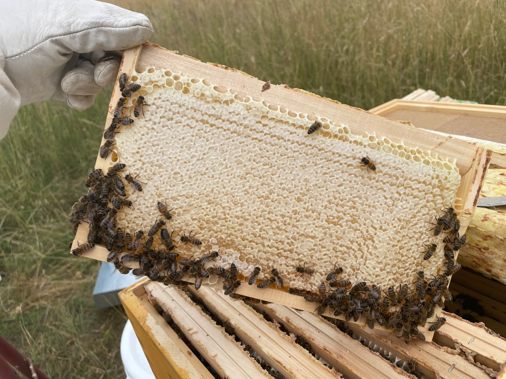 Wenn du meinem Blog folgst, weißt du, dass ich die 12-reihigen Einraumbeuten von Bienen Janisch habe und darauf habe ich eine Honigzarge mit kleinen Rähmchen und natürlich Schiffsrumpfleisten :-).