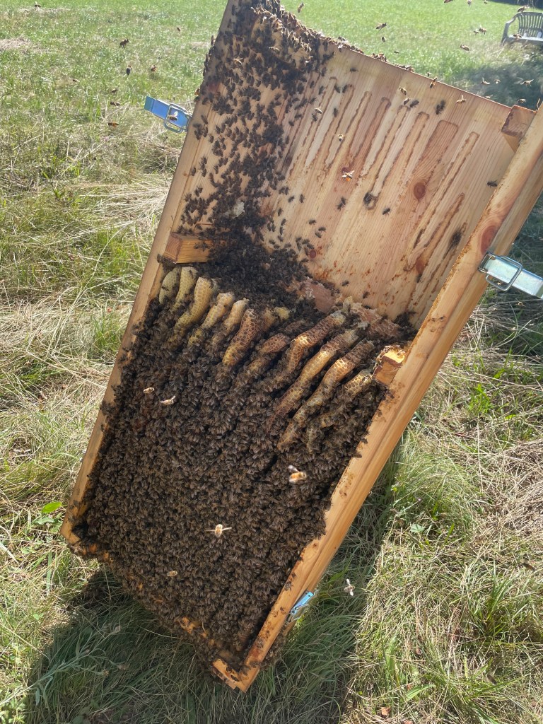 Die Ernte verlief zügig und die Bienen waren sehr geduldig mit mir.