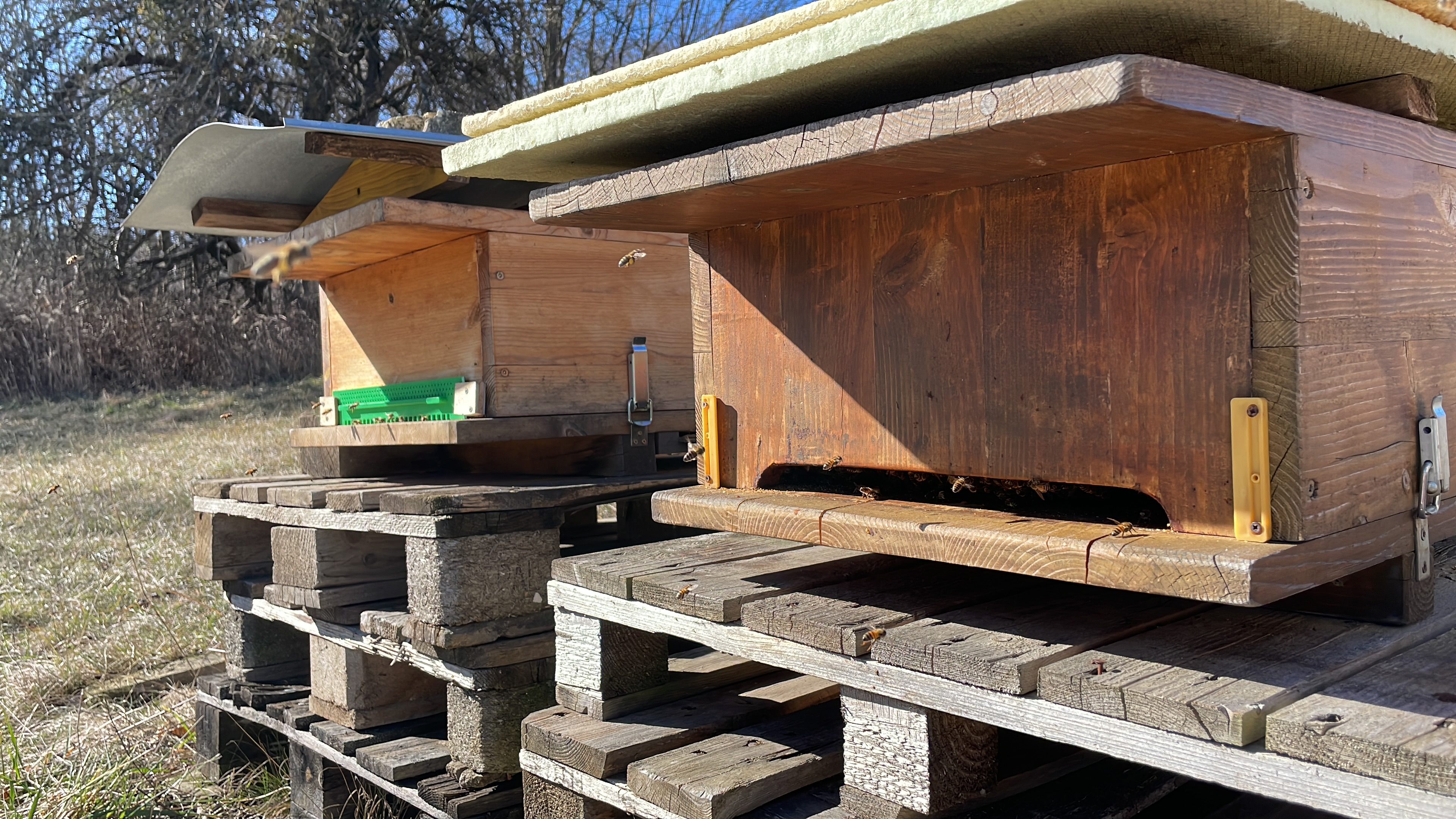 HeYo! Gestern hab ich mich kurzerhand entschlossen zu den Bienchens zu schauen. Sonne und knapp 20 Grad!! Ich dachte, die fliegen heute sicher …und ich hab sie heuer noch nicht richtig fliegen sehen …außerdem bei den warmen Temperaturen kann ich auch mal von hinten reingucken …gehts ihnen eh gut?